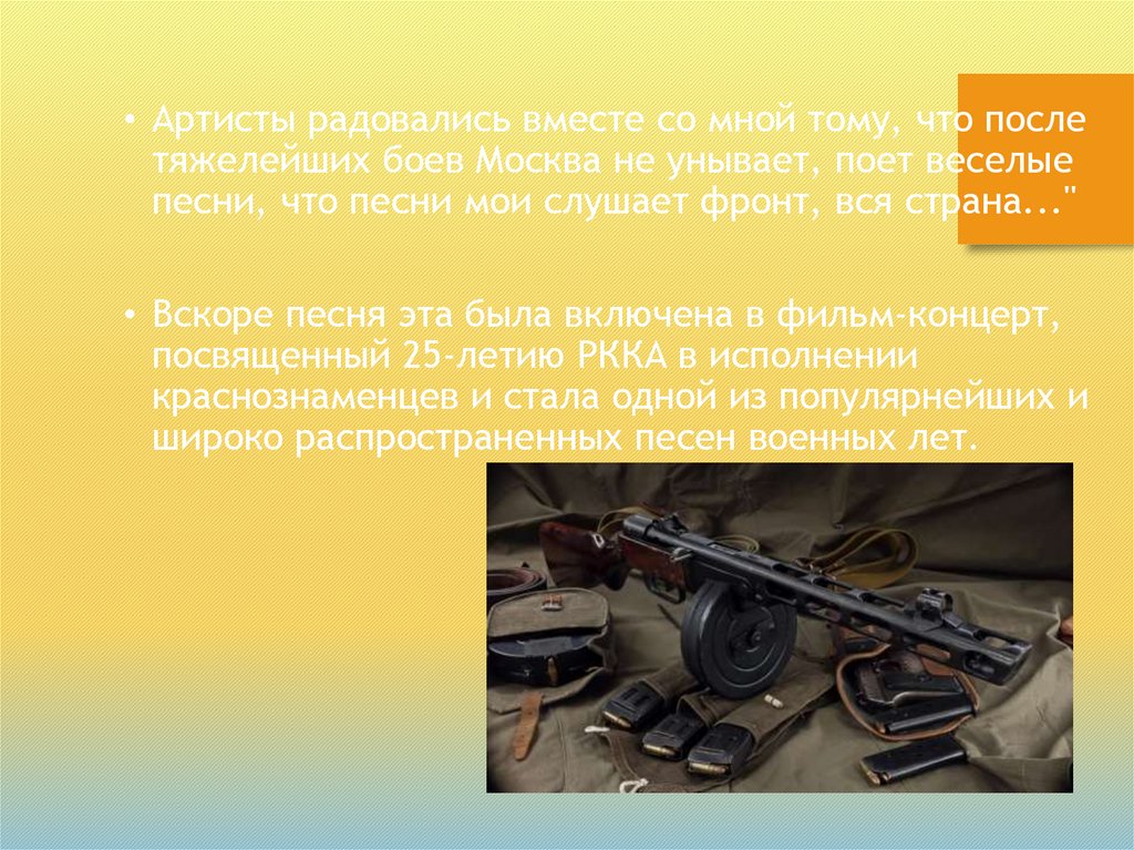широко распространенных песен военных лет.
