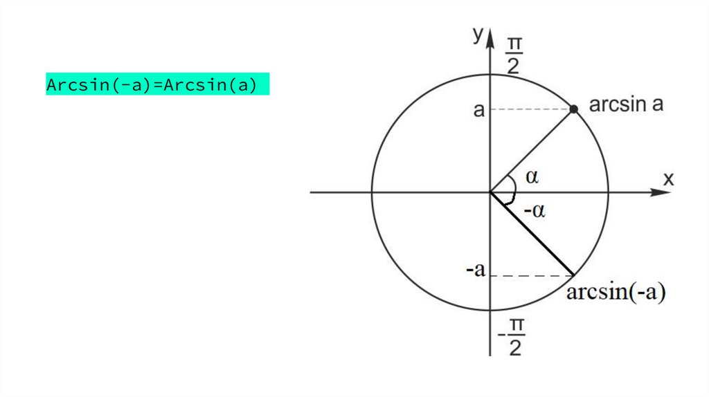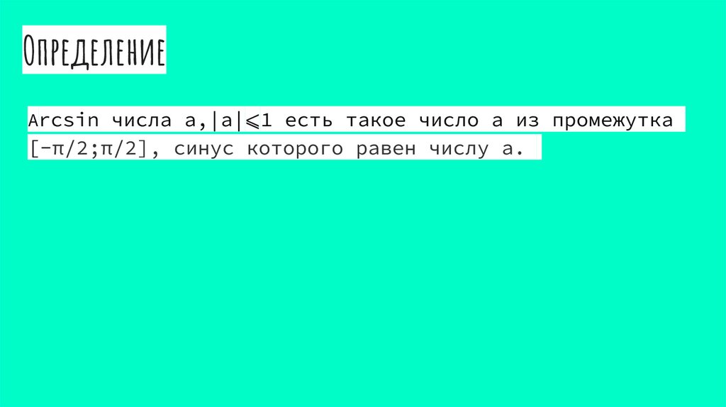 ОпределениеArcsin числа a,|a|⩽1 есть такое число a из промежутка