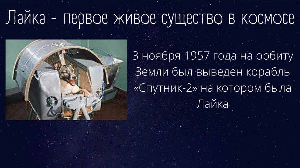 3 ноября 1957 года на орбитуЗемли был выведен корабль