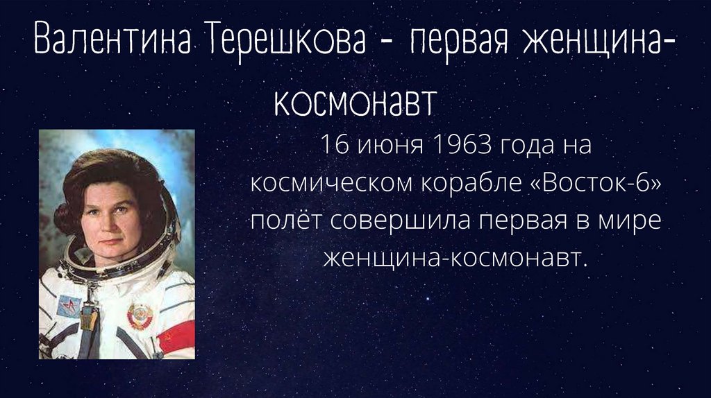 16 июня 1963 года накосмическом корабле «Восток-6»