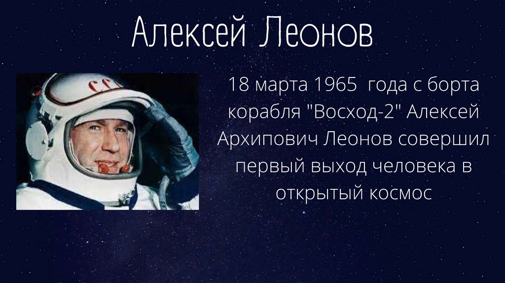 18 марта 1965 года с бортакорабля "Восход-2" Алексей
