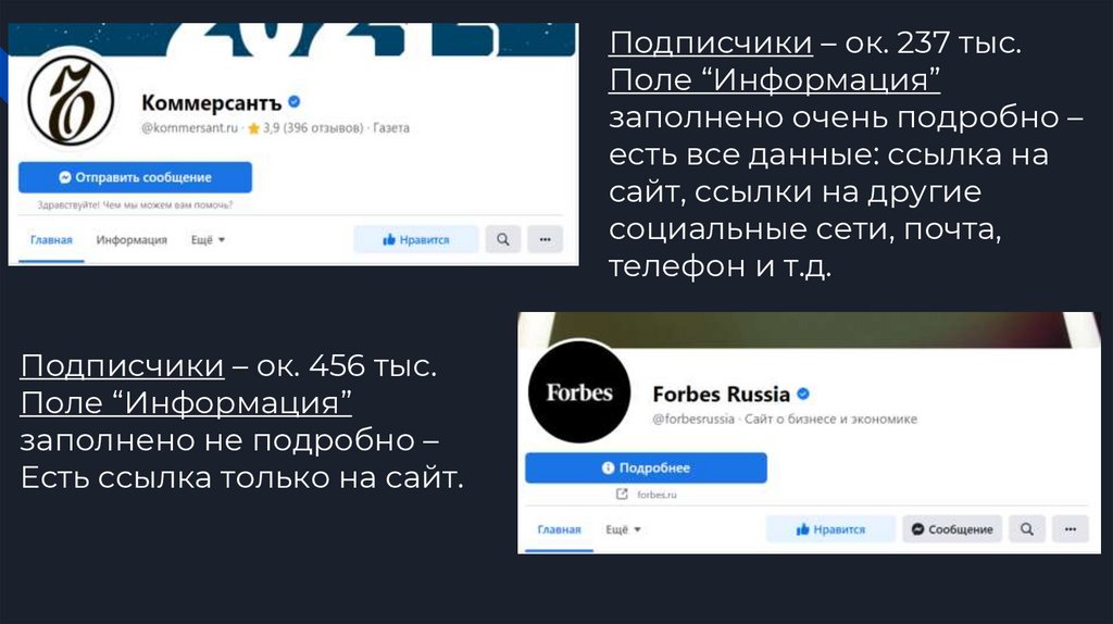 Анализ SMMстратегии Forbes.ru иКоммерсантъ в