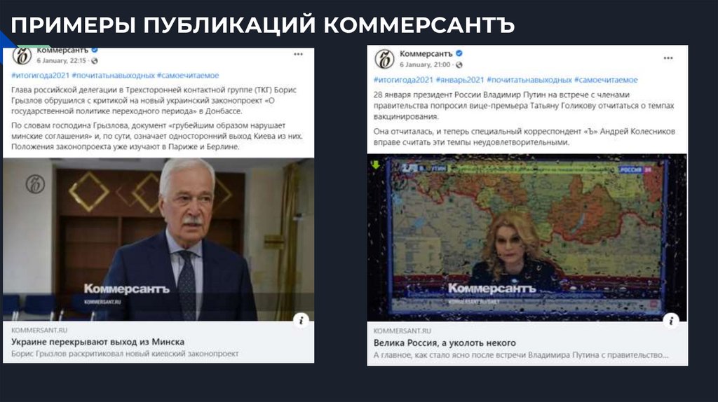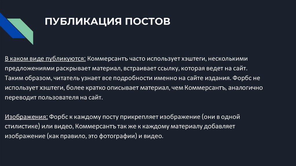 ПУБЛИКАЦИЯ ПОСТОВВ каком виде публикуются: Коммерсантъ часто использует хэштеги, несколькими