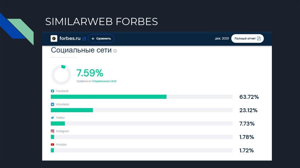 согласно статистике Similarweb. Читатели Форбс в целом более активно используют соц. сети