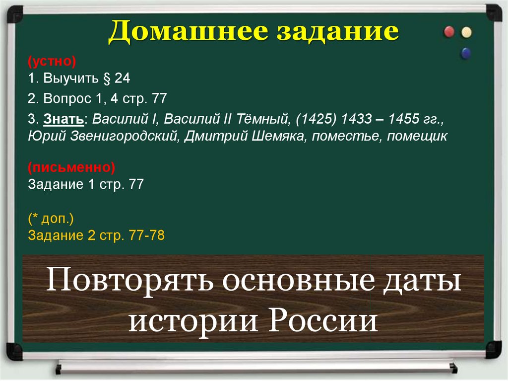 Повторять основные даты