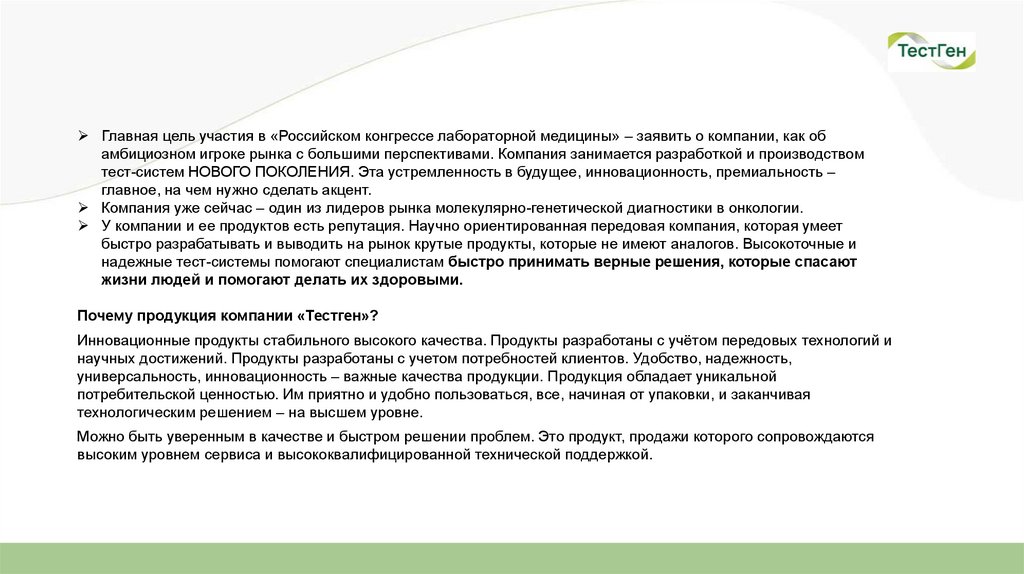 О КОМПАНИИКомпания «ТестГен» основана в 2012 году и сегодня является