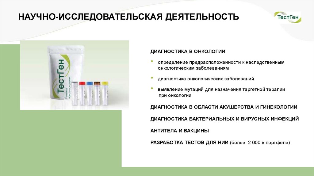 2. основных направлений (разработка и производство тест-систем для молекулярногенетической диагностики, секвенирование, разработка вакцин, биоинформатика)