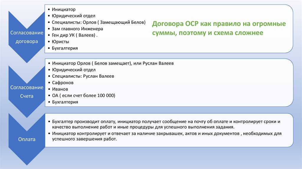 Загрузка счета • Согласование счетов и договоров: Сафронов, Валеев,, Ген.Директор ( если больше 100
