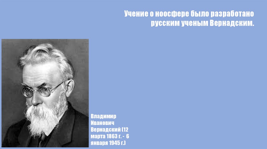 Учение о ноосфере было разработанорусским ученым Вернадским.