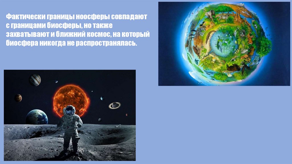Фактически границы ноосферы совпадаютс границами биосферы, но также