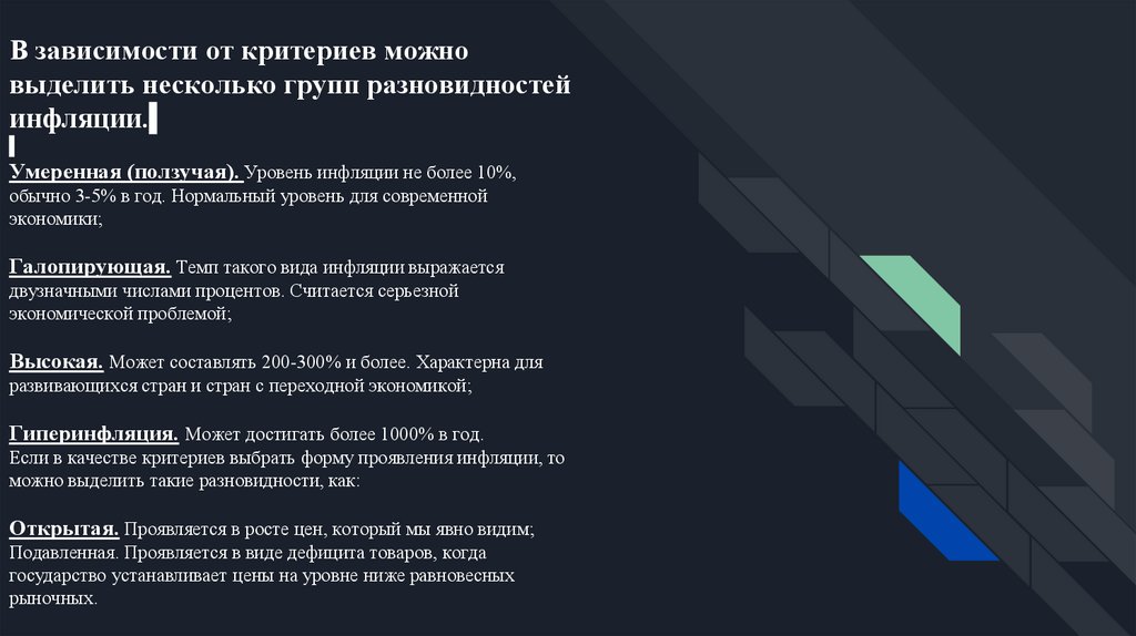 Умеренная (ползучая). Уровень инфляции не более 10%,