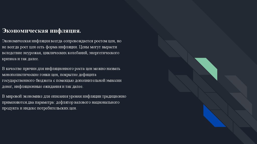 Экономическая инфляция.Экономическая инфляция всегда сопровождается ростом цен, но