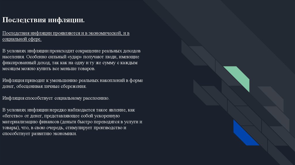 Последствия инфляции.Последствия инфляции проявляются и в экономической, и в