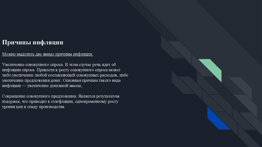Причины инфляцииМожно выделить две явные причины инфляции: