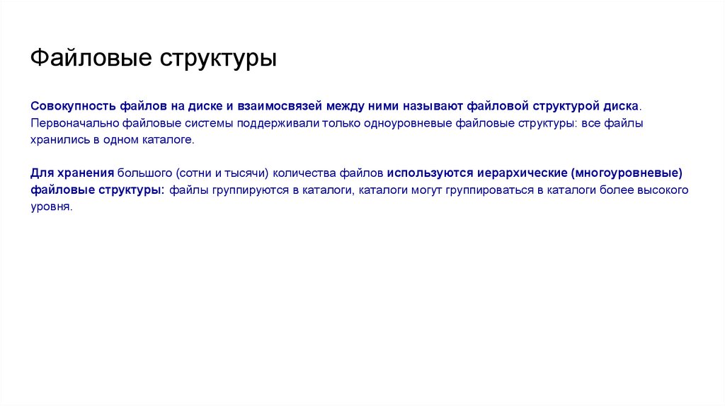 Для хранения большого (сотни и тысячи) количества файлов используются иерархические (многоуровневые)