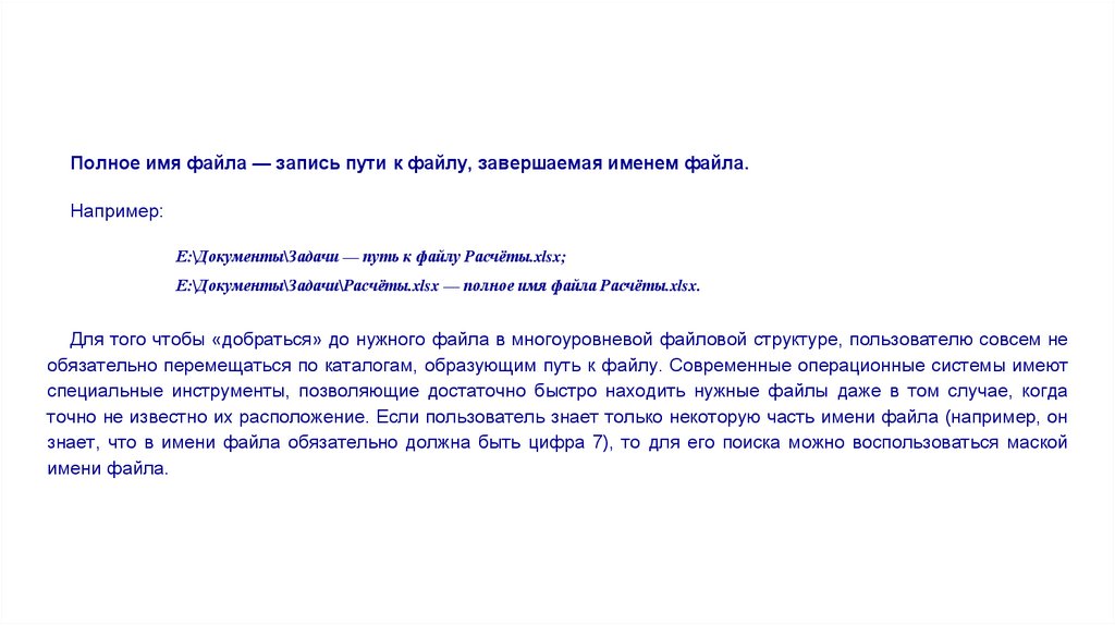 Для того чтобы «добраться» до нужного файла в многоуровневой файловой структуре, пользователю совсем не