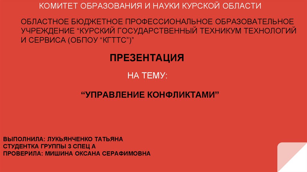 “УПРАВЛЕНИЕ КОНФЛИКТАМИ”