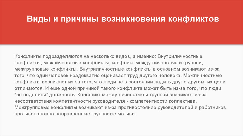 Виды и причины возникновения конфликтов