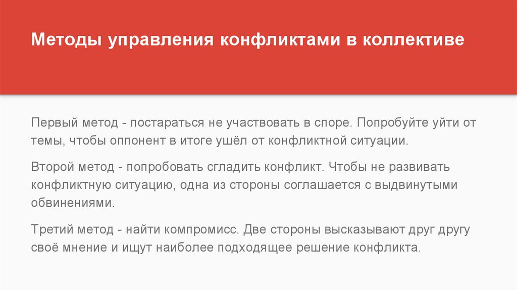 Методы управления конфликтами в коллективе