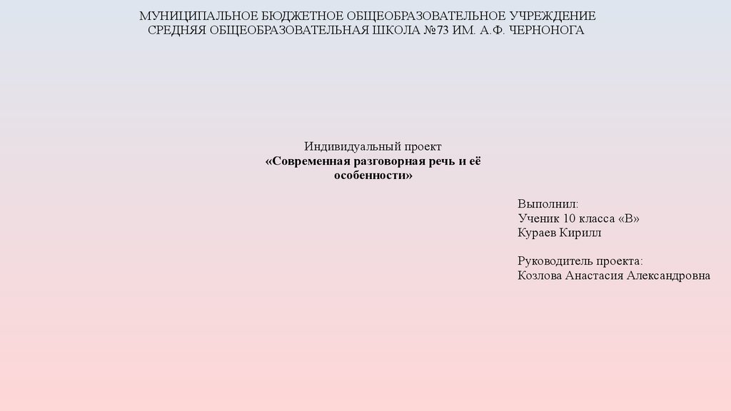 МУНИЦИПАЛЬНОЕ БЮДЖЕТНОЕ ОБЩЕОБРАЗОВАТЕЛЬНОЕ УЧРЕЖДЕНИЕСРЕДНЯЯ ОБЩЕОБРАЗОВАТЕЛЬНАЯ ШКОЛА №73 ИМ. А.Ф. ЧЕРНОНОГА