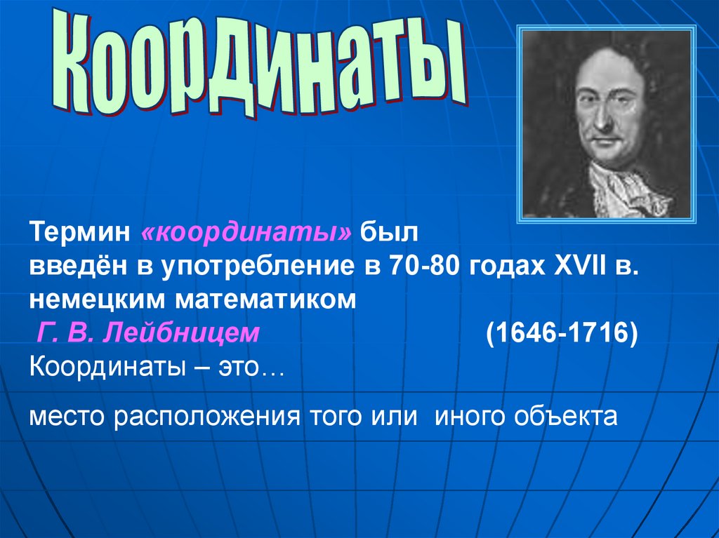 Термин «координаты» былвведён в употребление в 70-80 годах XVII в.