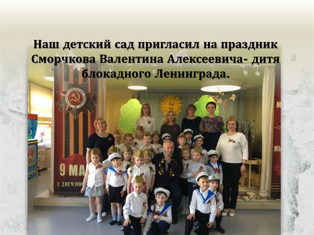 Наш детский сад пригласил на праздникСморчкова Валентина Алексеевича- дитя