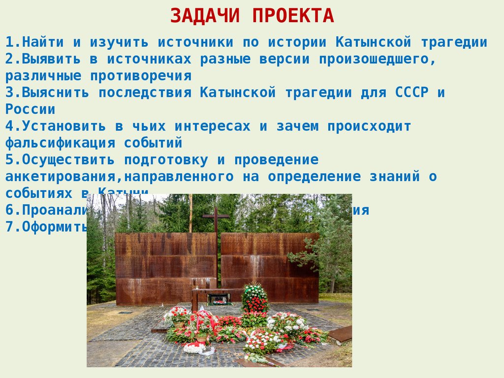 ЗАДАЧИ ПРОЕКТА1.Найти и изучить источники по истории Катынской трагедии