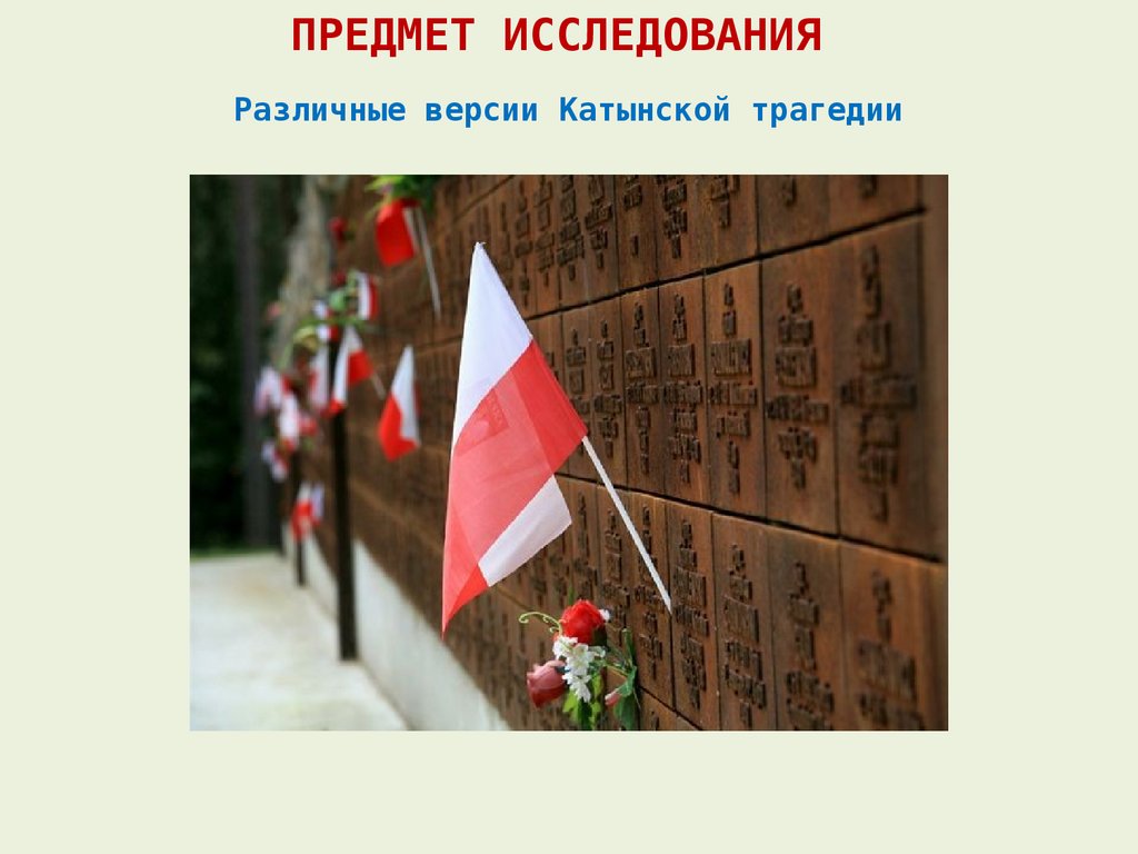 ПРЕДМЕТ ИССЛЕДОВАНИЯРазличные версии Катынской трагедии