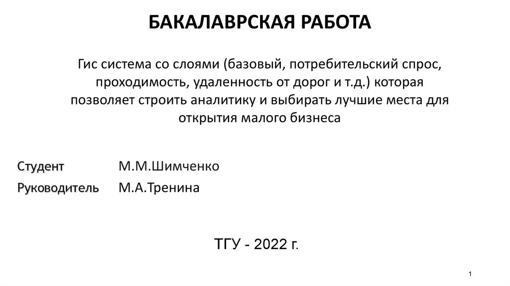 1. БАКАЛАВРСКАЯ РАБОТА Гис система со слоями (базовый, потребительский спрос, проходимость, удаленность от дорог и т.д.) которая