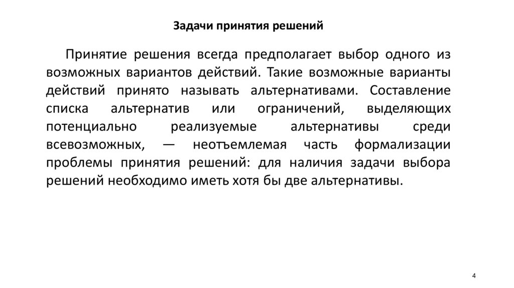 Задачи принятия решенийПринятие решения всегда предполагает выбор одного из