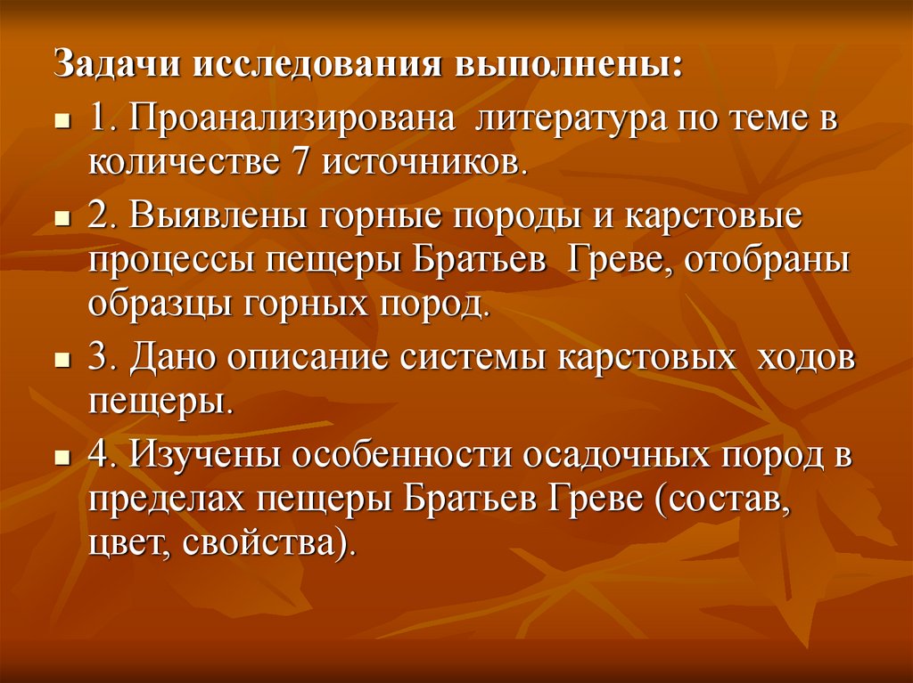 пределах пещеры Братьев Греве (состав,