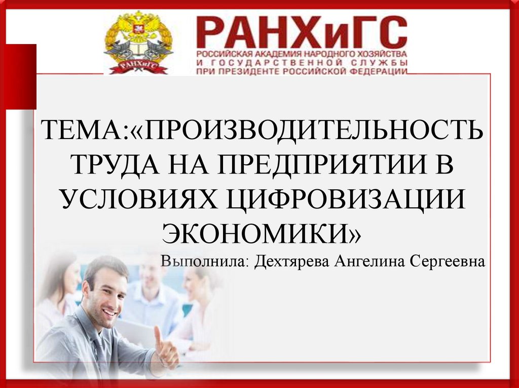 ТЕМА:«ПРОИЗВОДИТЕЛЬНОСТЬТРУДА НА ПРЕДПРИЯТИИ В