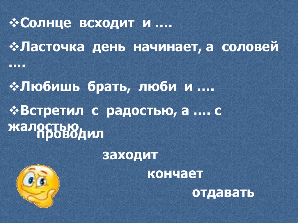 Солнце всходит и ….Ласточка день начинает, а соловей
