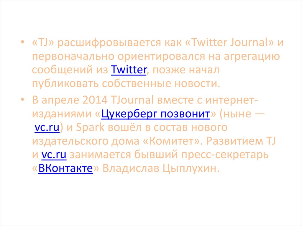 • В апреле 2014 TJournal вместе с интернетизданиями «Цукерберг позвонит» (ныне —