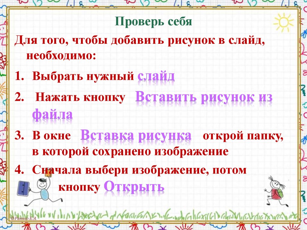 Проверь себяДля того, чтобы добавить рисунок в слайд,