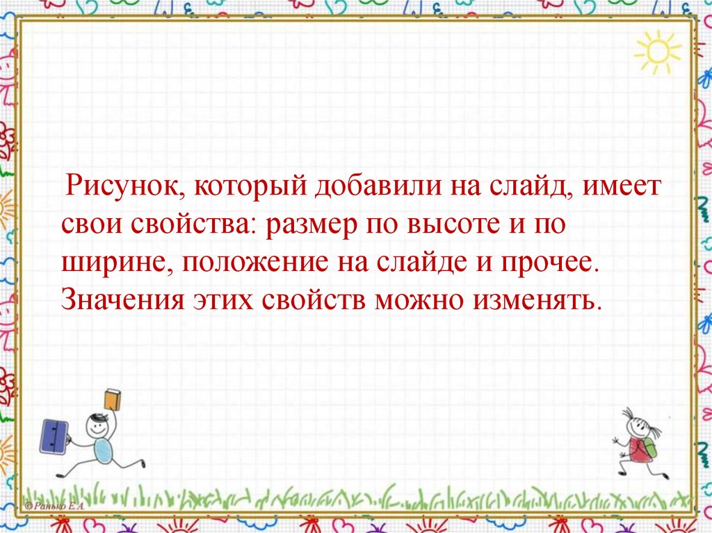 Рисунок, который добавили на слайд, имеетсвои свойства: размер по высоте и по