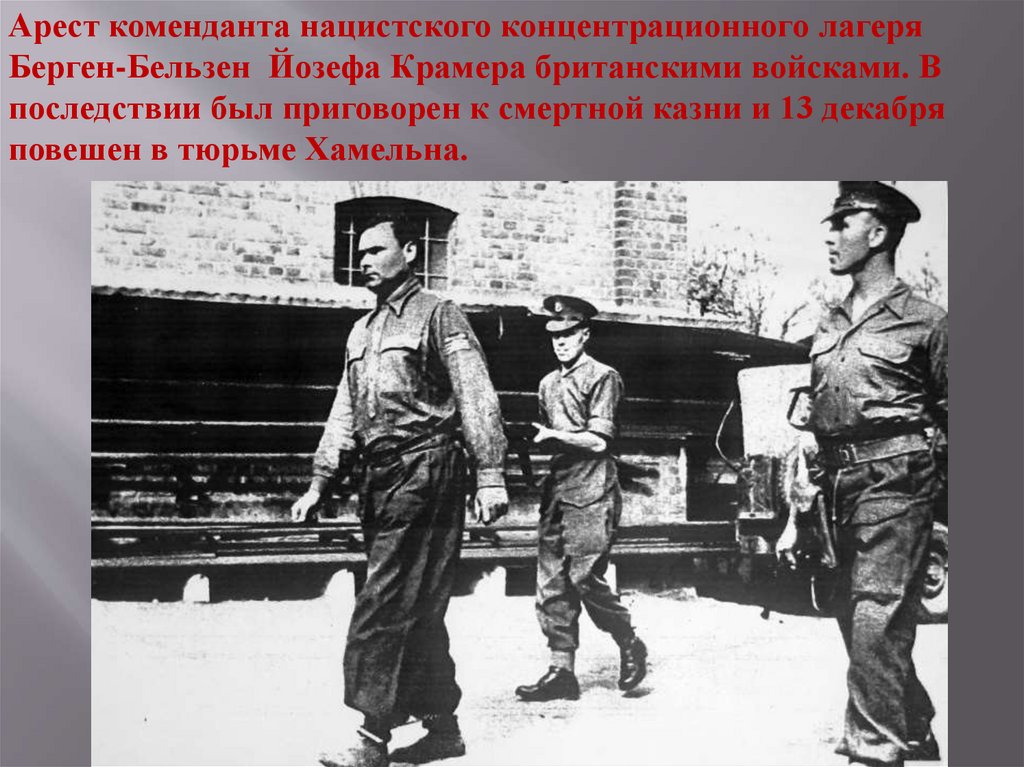 Арест коменданта нацистского концентрационного лагеряБерген-Бельзен Йозефа Крамера британскими войсками. В