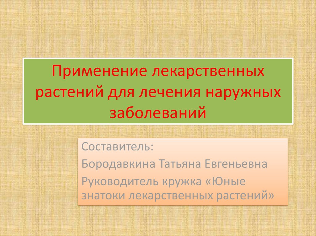 1. Применение лекарственных растений для лечения наружных заболеваний