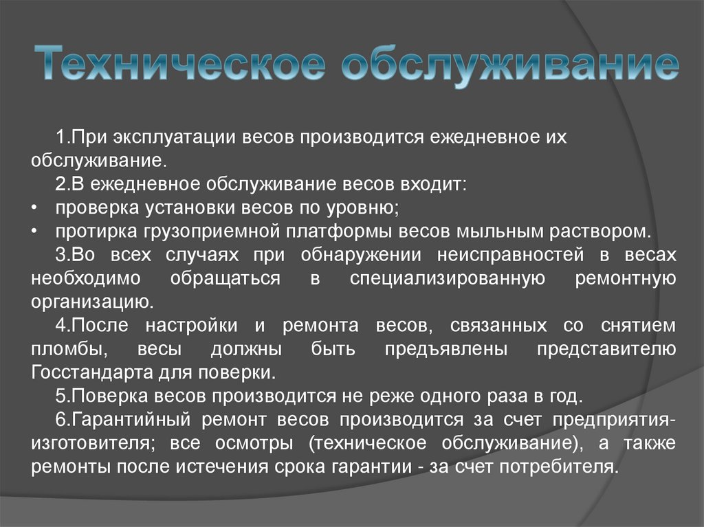 1.При эксплуатации весов производится ежедневное ихобслуживание.