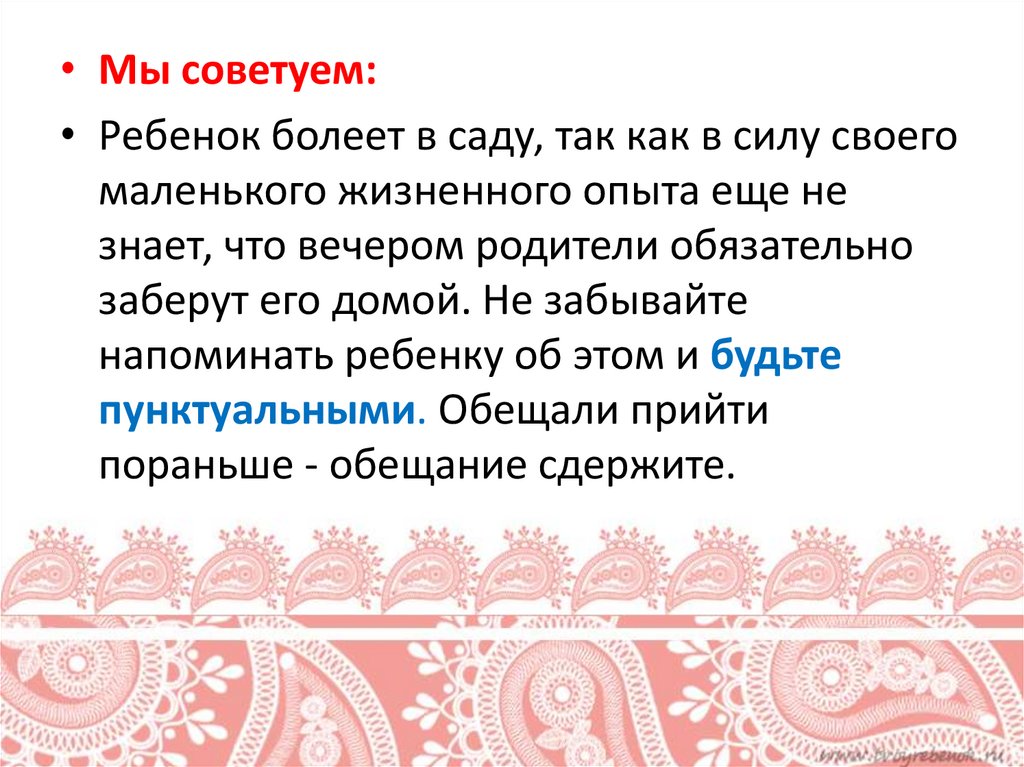 • Мы советуем:• Ребенок болеет в саду, так как в силу своего
