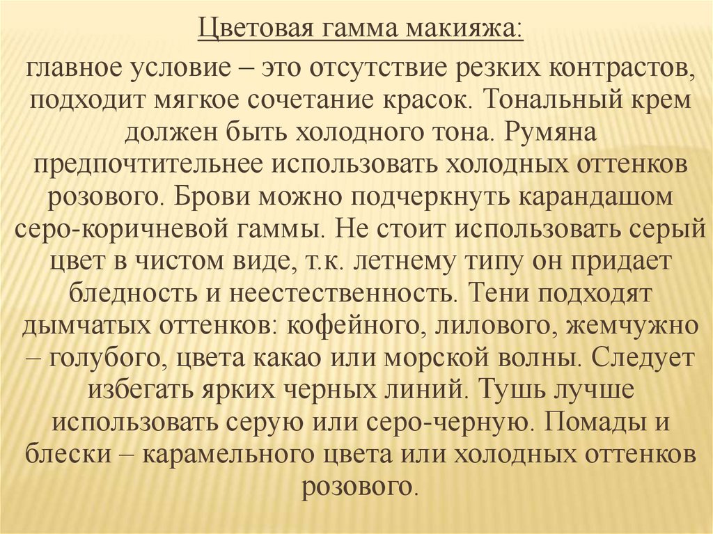 ХАРАКТЕРИСТИКА ЛЕТНЕГО ЦВЕТОТИПА:в этом типе доминируют холодные неяркие
