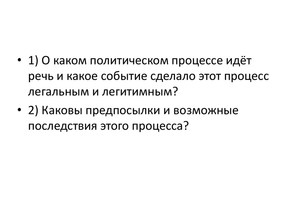 • 1) О каком политическом процессе идётречь и какое событие сделало этот процесс