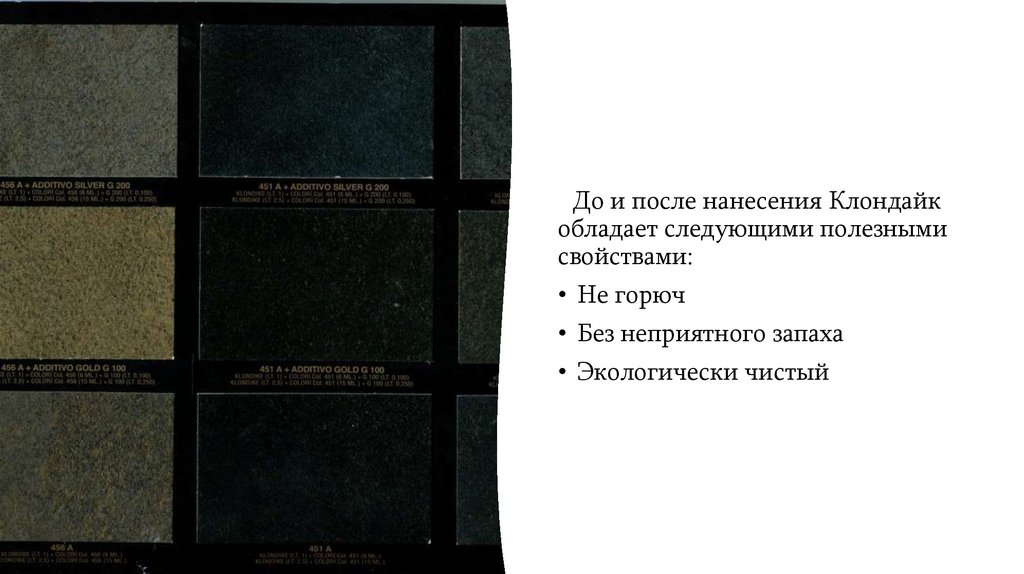 До и после нанесения Клондайкобладает следующими полезными