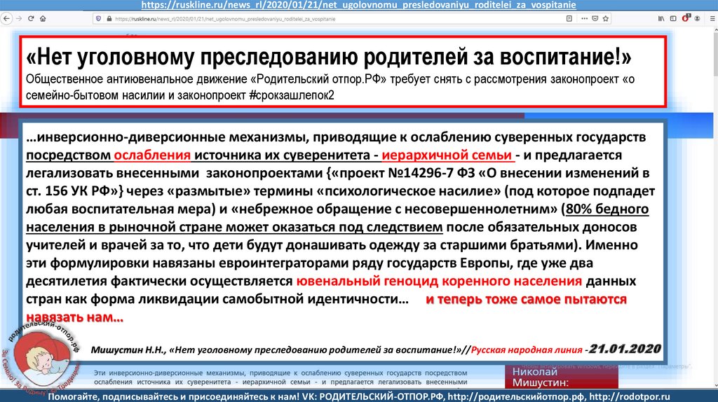 https://ruskline.ru/news_rl/2020/01/21/net_ugolovnomu_presledovaniyu_roditelei_za_vospitanie«Нет уголовному преследованию родителей за воспитание!»