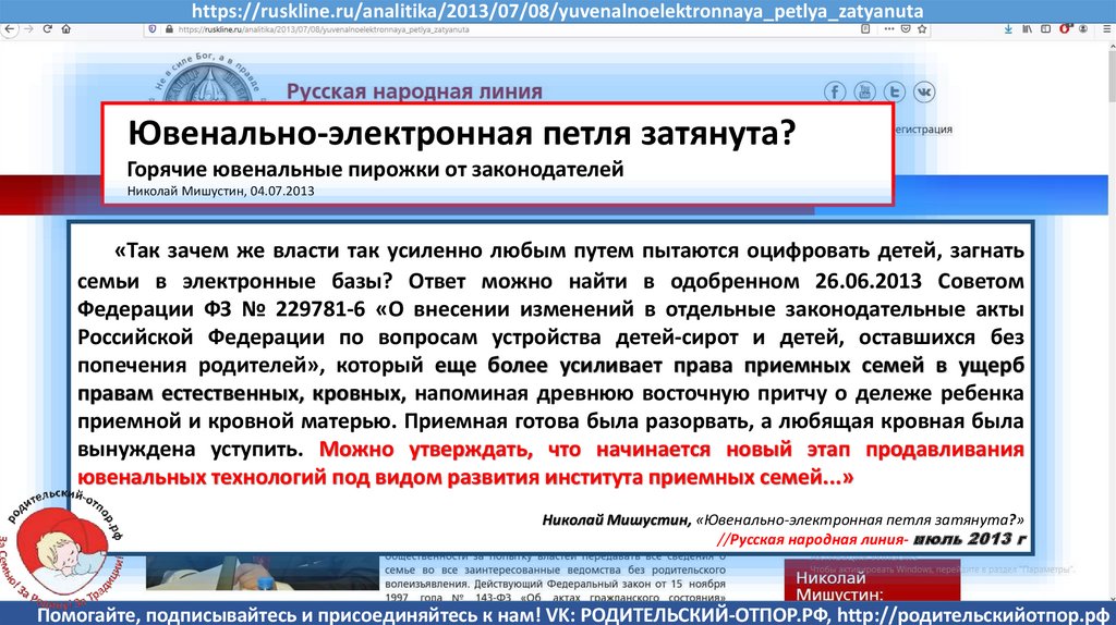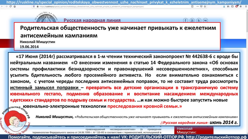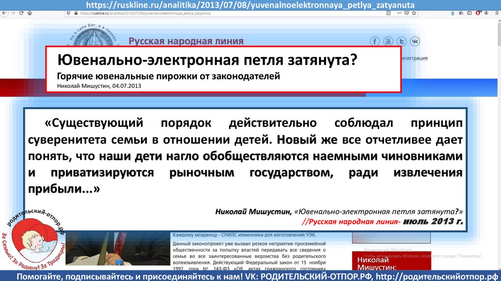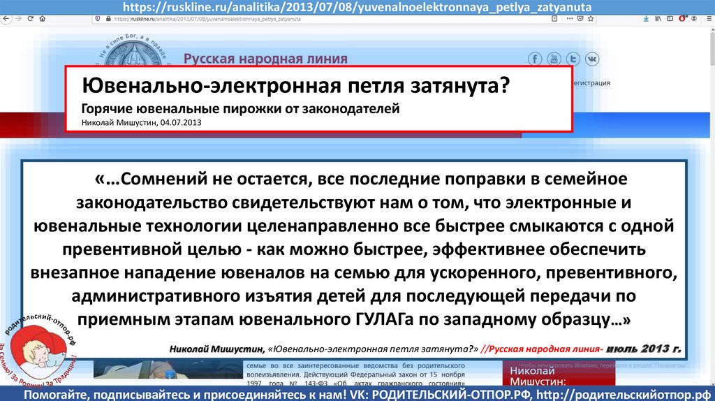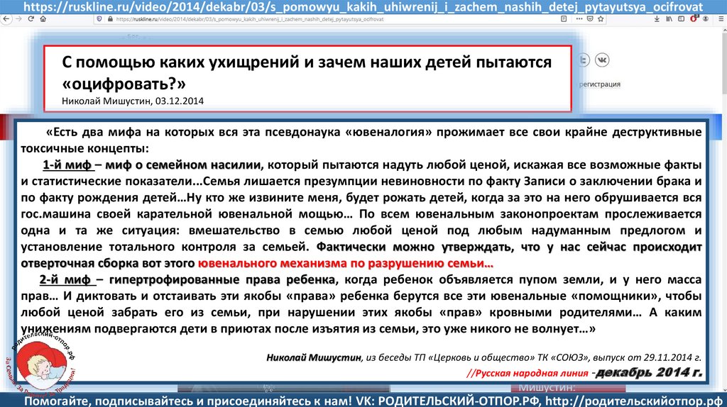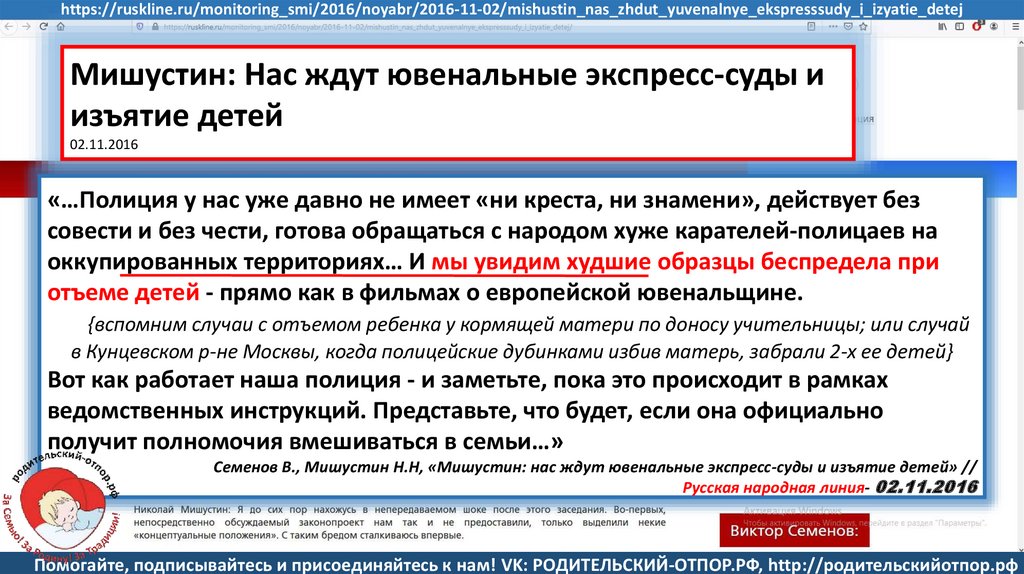 Семенов В., Мишустин Н.Н, «Мишустин: нас ждут ювенальные экспресс-суды и изъятие детей» //