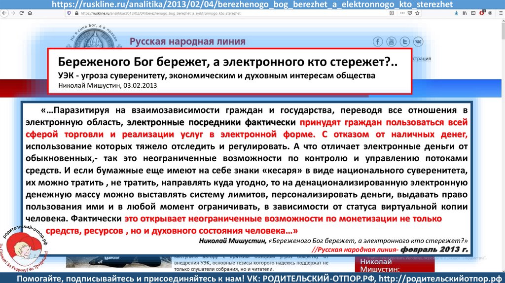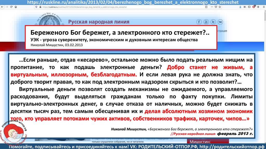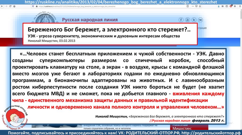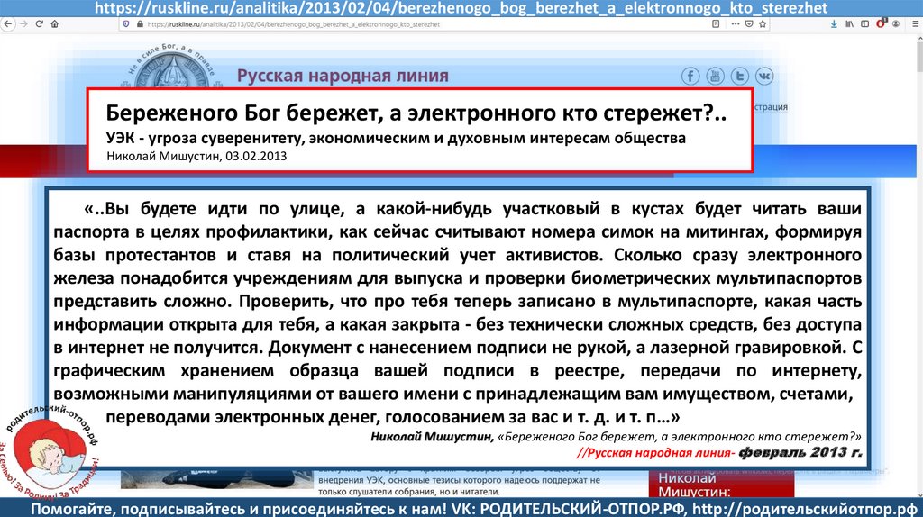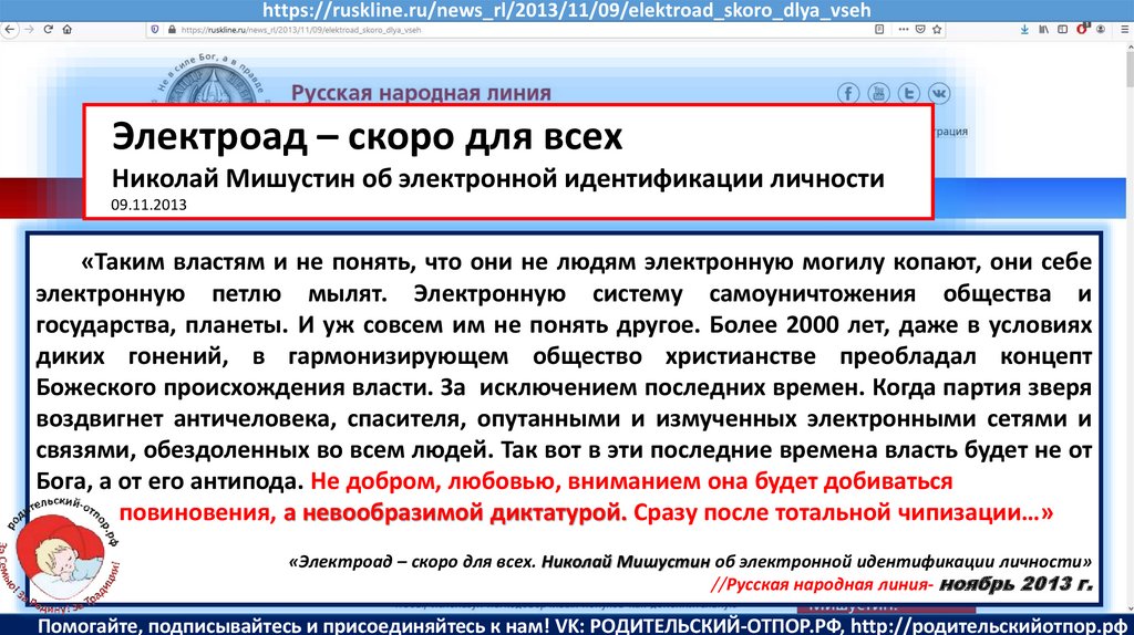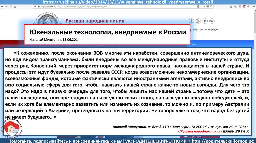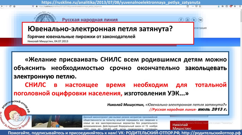 Семенов В., Мишустин Н.Н, «Мишустин: нас ждут ювенальные экспресс-суды и изъятие детей» //