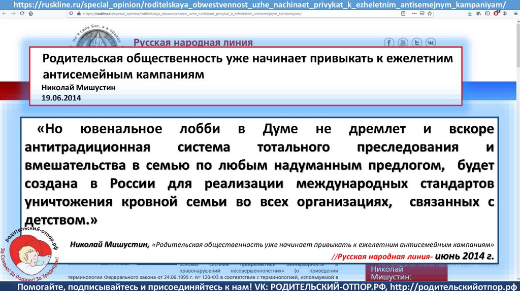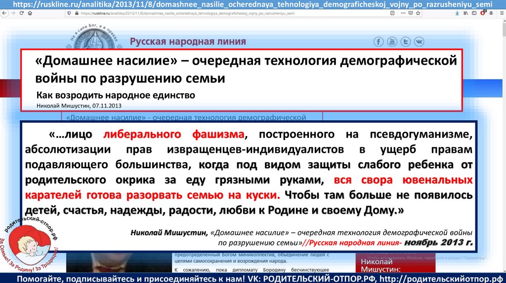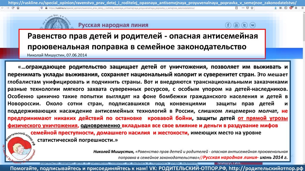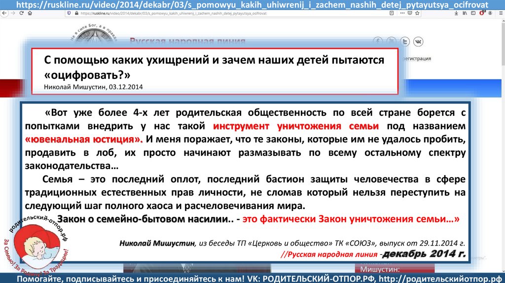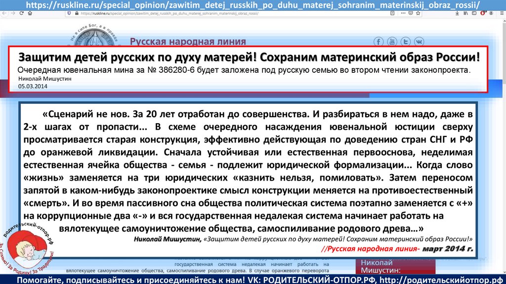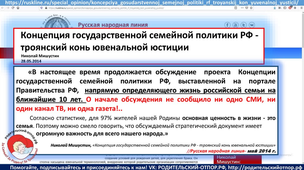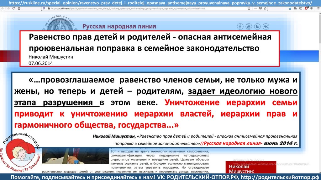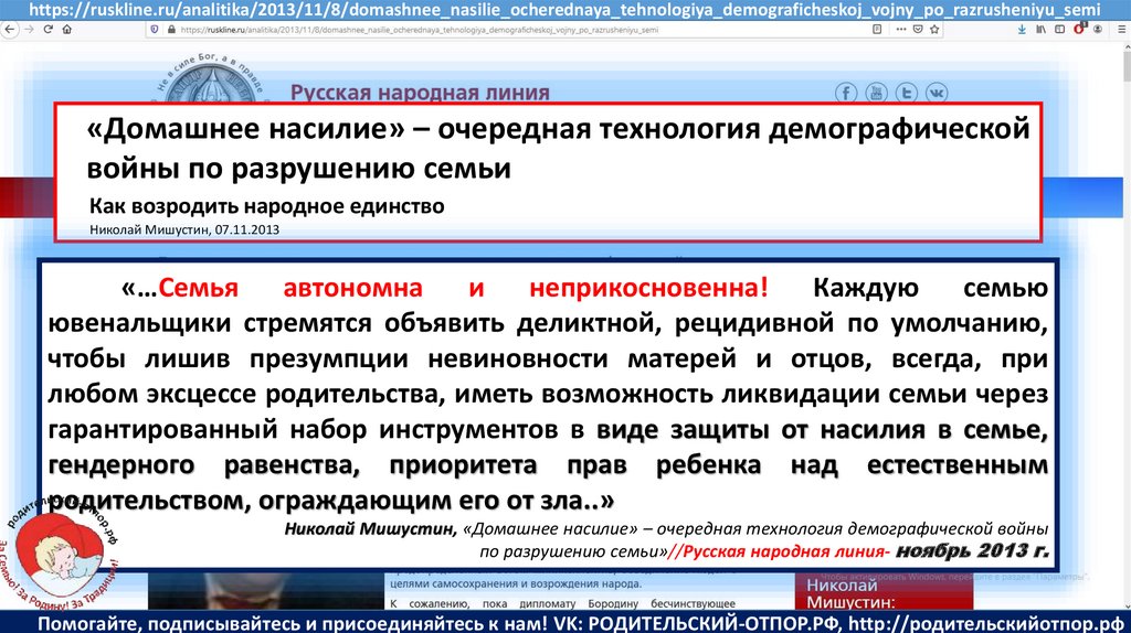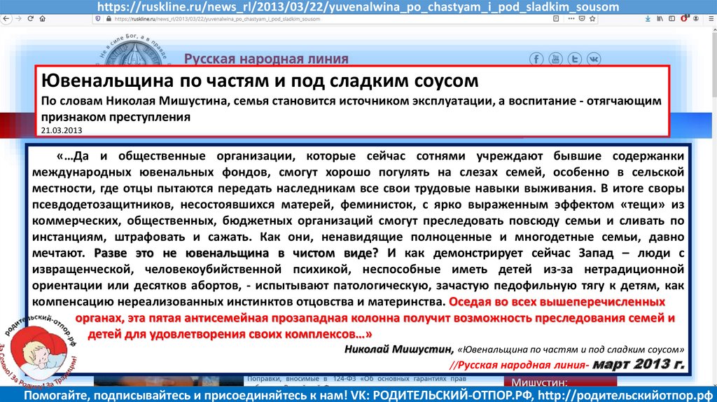 Мишустин Н.Н., «Нет уголовному преследованию родителей за воспитание!»//Русская народная линия -21.01.2020