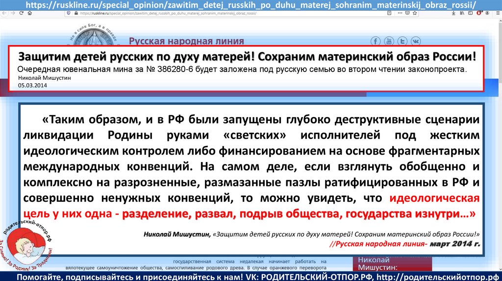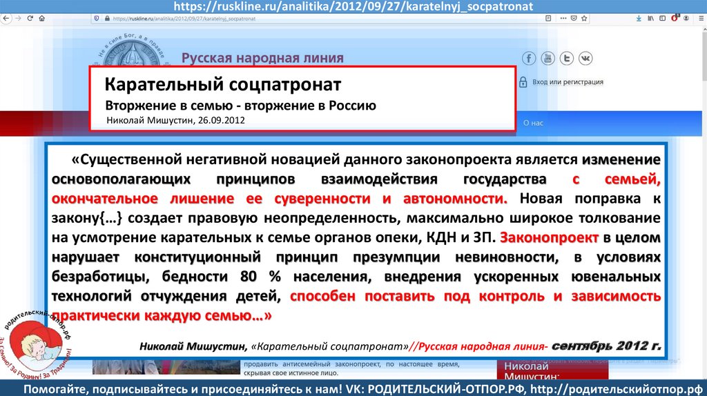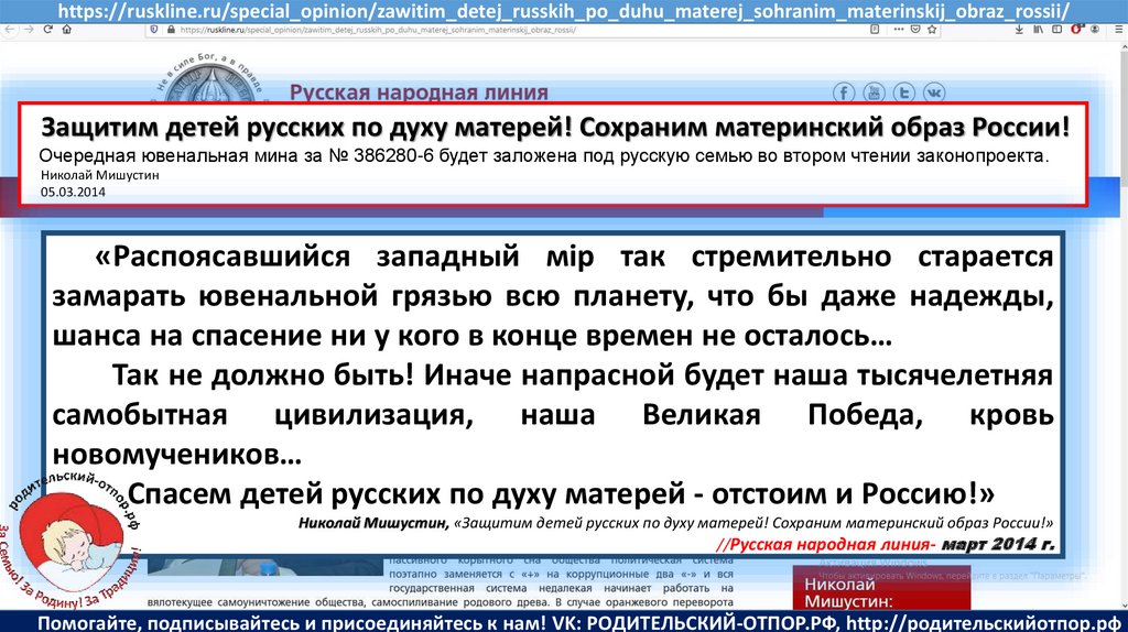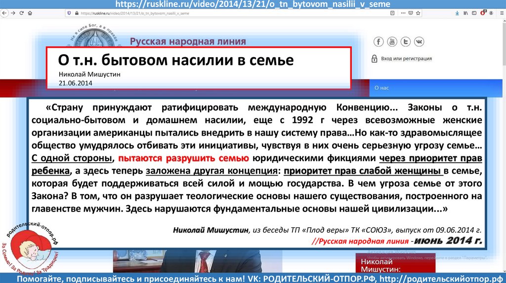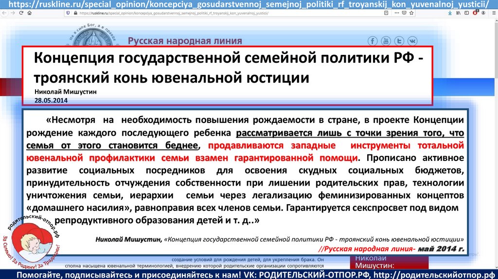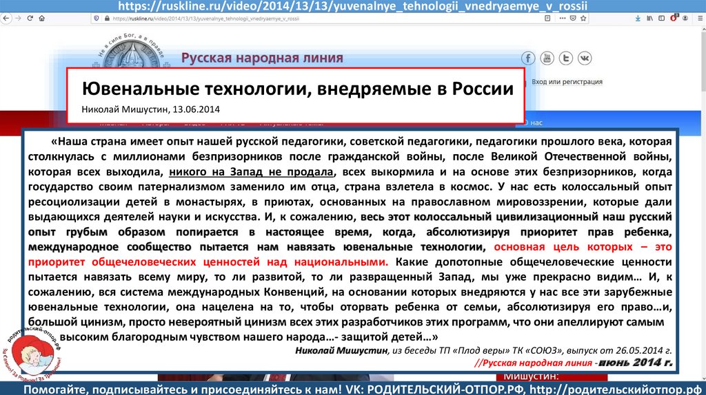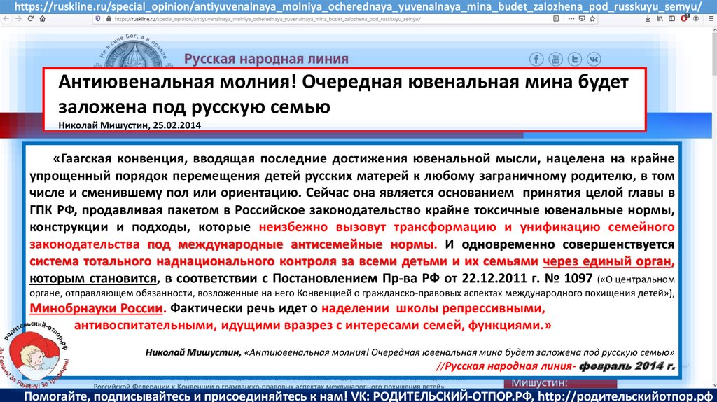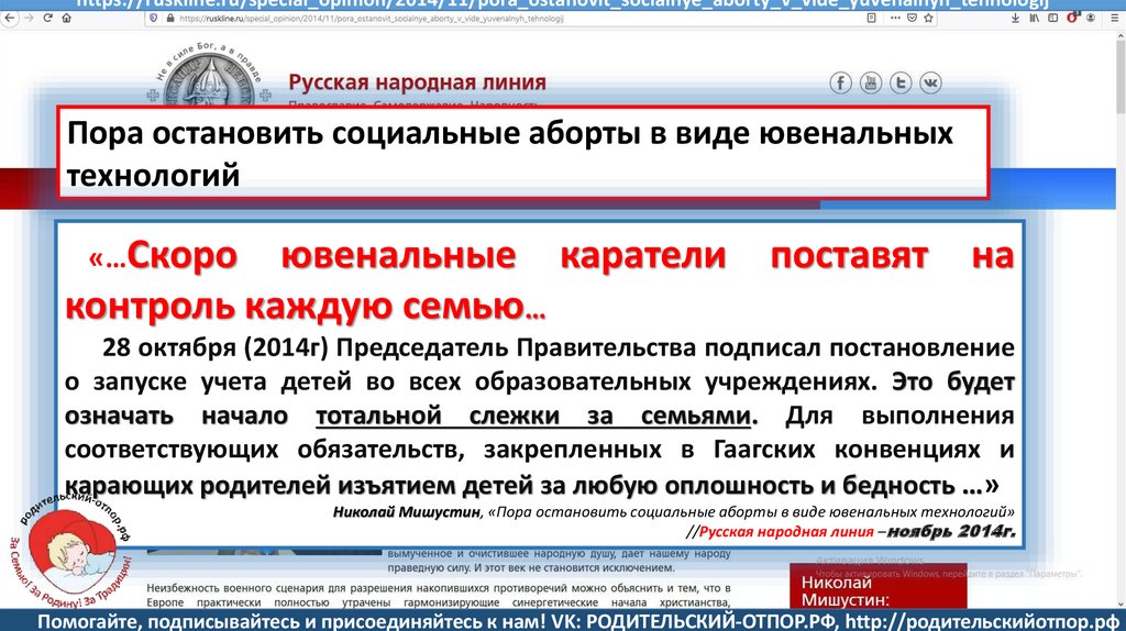 Мишустин Н.Н., «Нет уголовному преследованию родителей за воспитание!»//Русская народная линия -21.01.2020