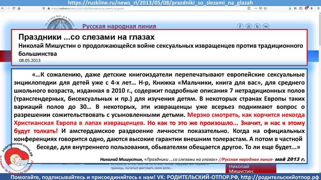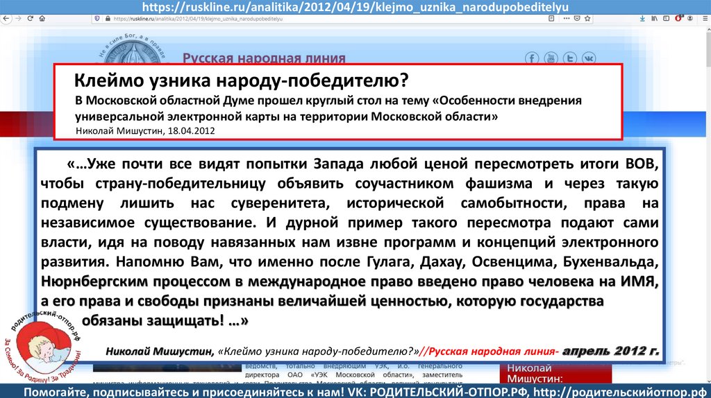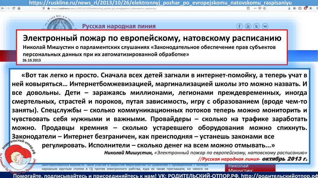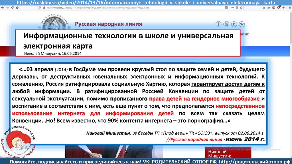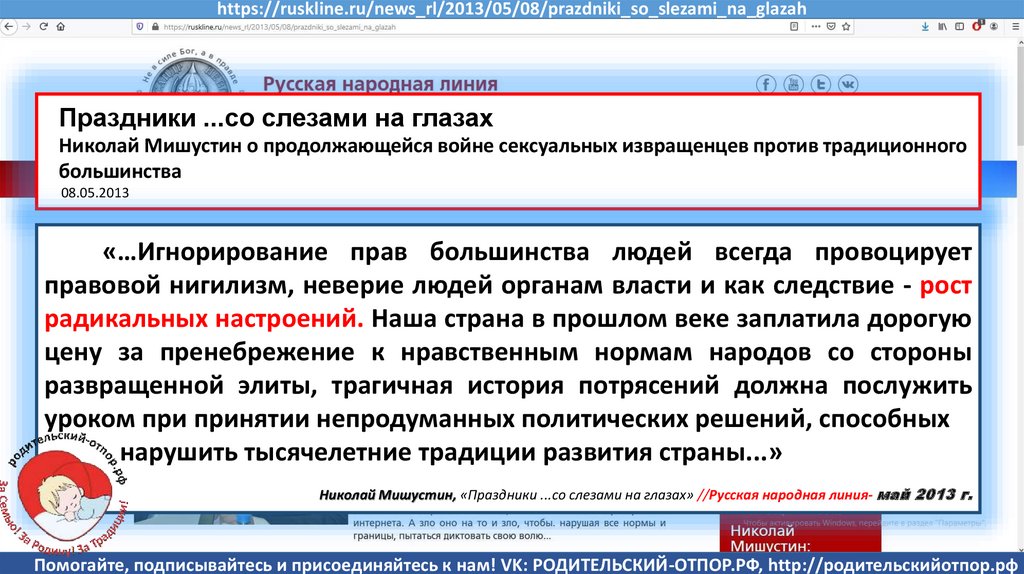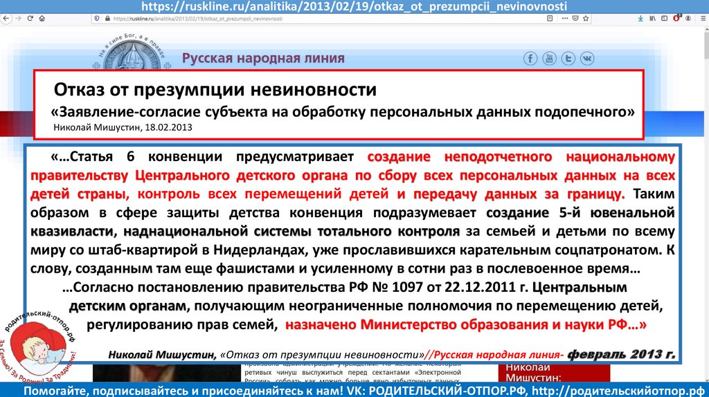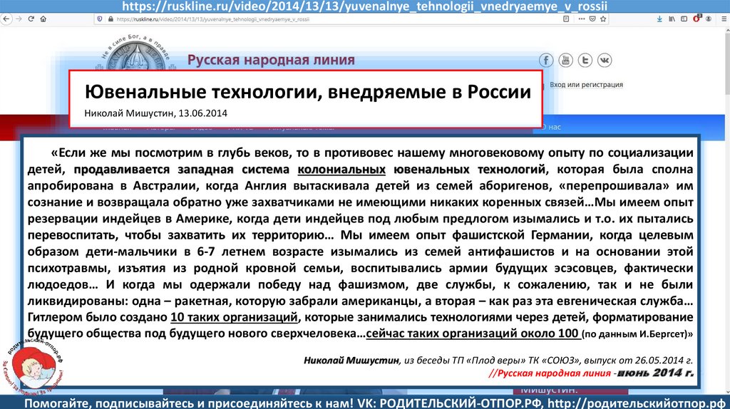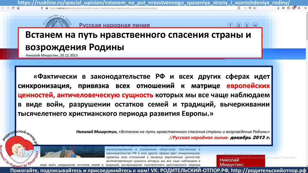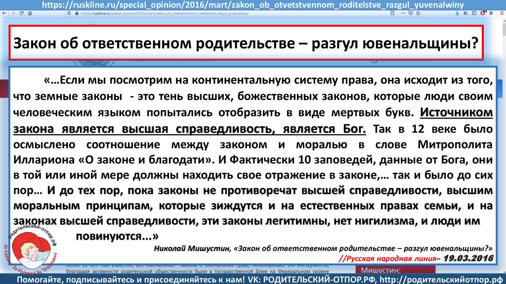 Мишустин Н.Н., «Нет уголовному преследованию родителей за воспитание!»//Русская народная линия -21.01.2020