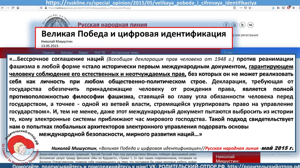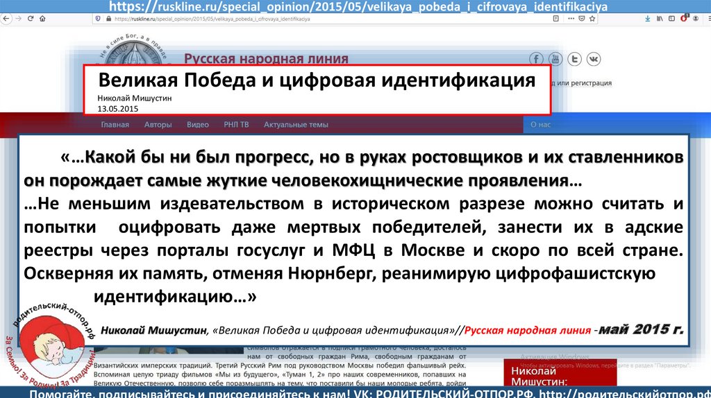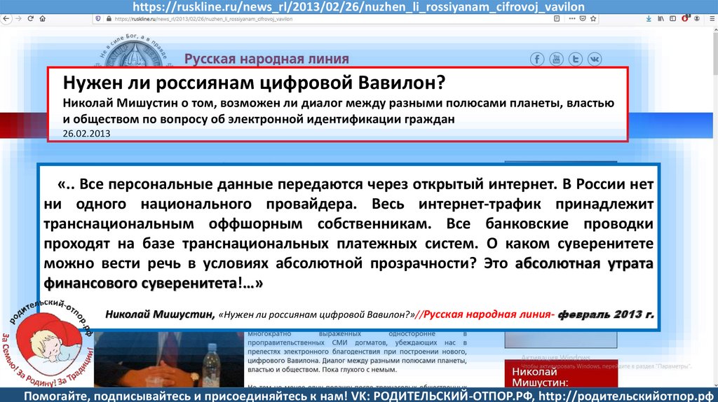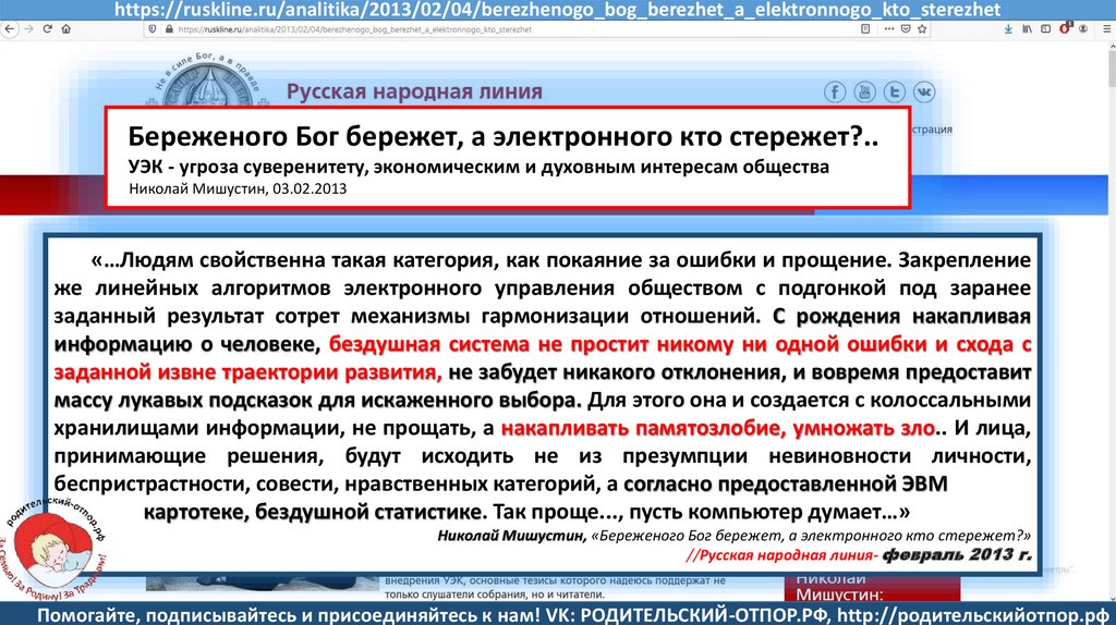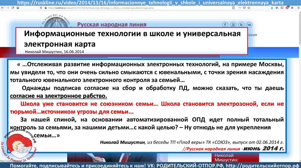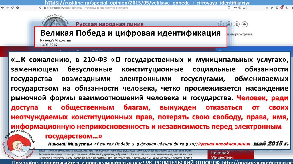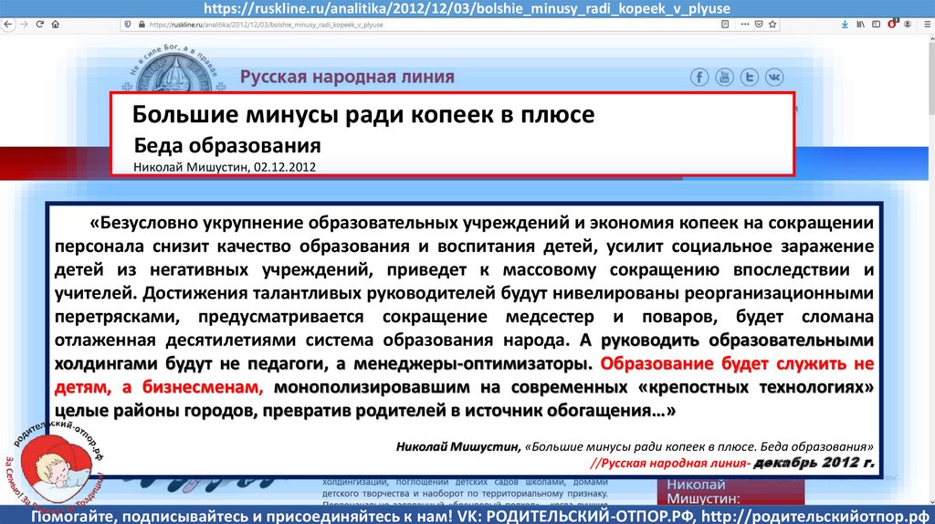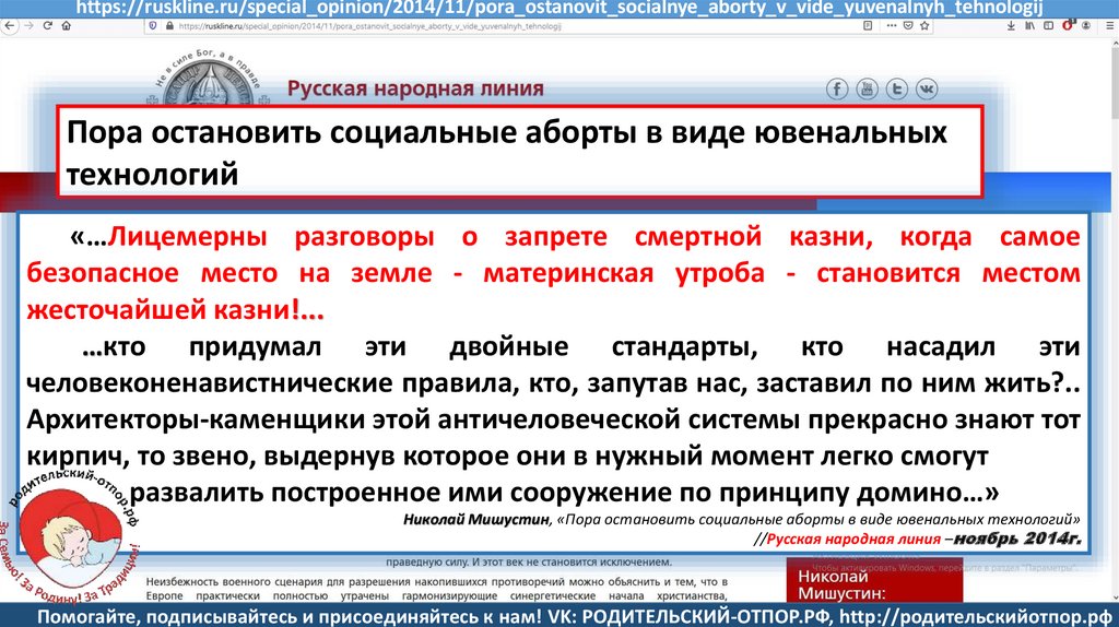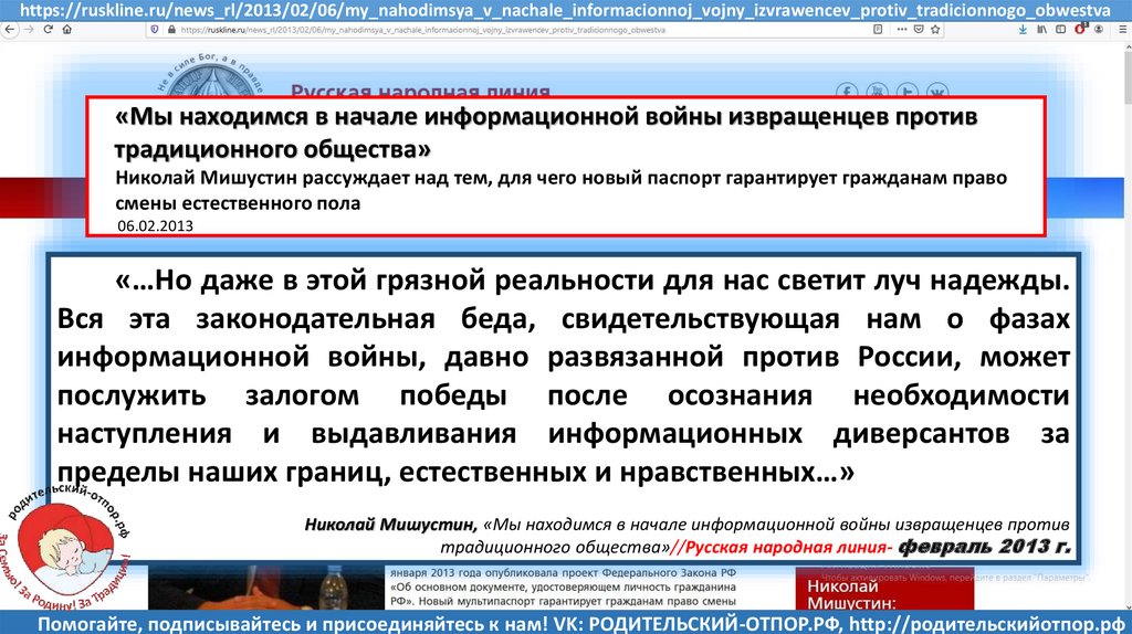 Мишустин Н.Н., «Нет уголовному преследованию родителей за воспитание!»//Русская народная линия -21.01.2020